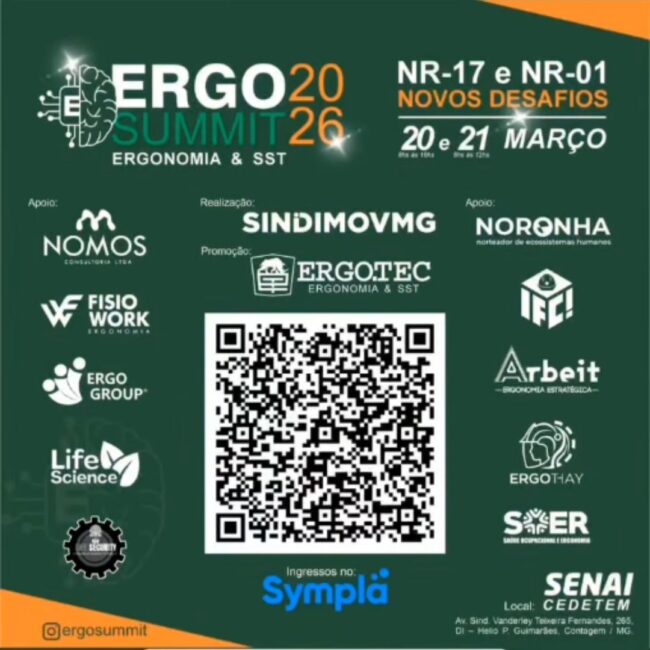 O maior evento de Ergonomia & SST de Minas Gerais. Tema dessa edição: NR-17 e NR-01, Novos desafios.O Evento acontece nos dias 20 e 21