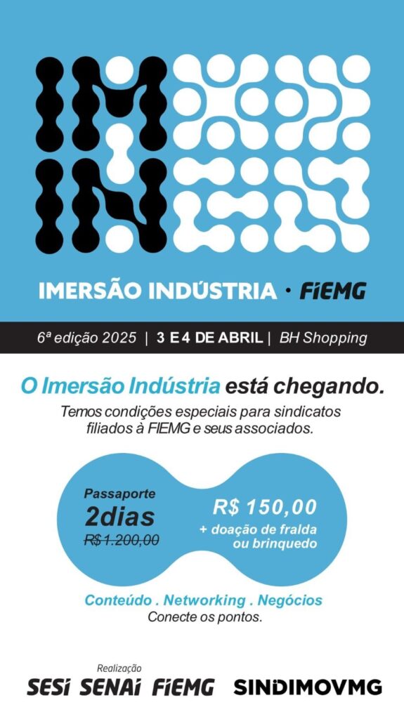 A primeira edição de 2025 do maior evento da Indústria brasileira já tem data e local: O Imersão Indústria vai acontecer nos dias 3 e 4 de abril no BH Shopping, em Belo Horizonte (MG).